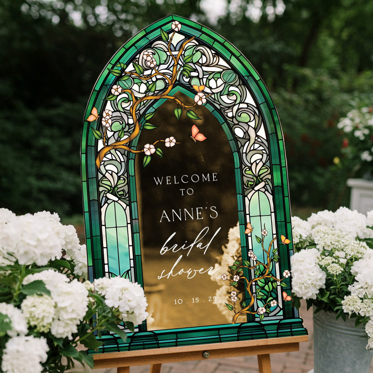 Emerald Green Bridal Shower Sign, Stained Glass Shower Sign, Custom Wildflowers Bridal Shower Welcome Sign