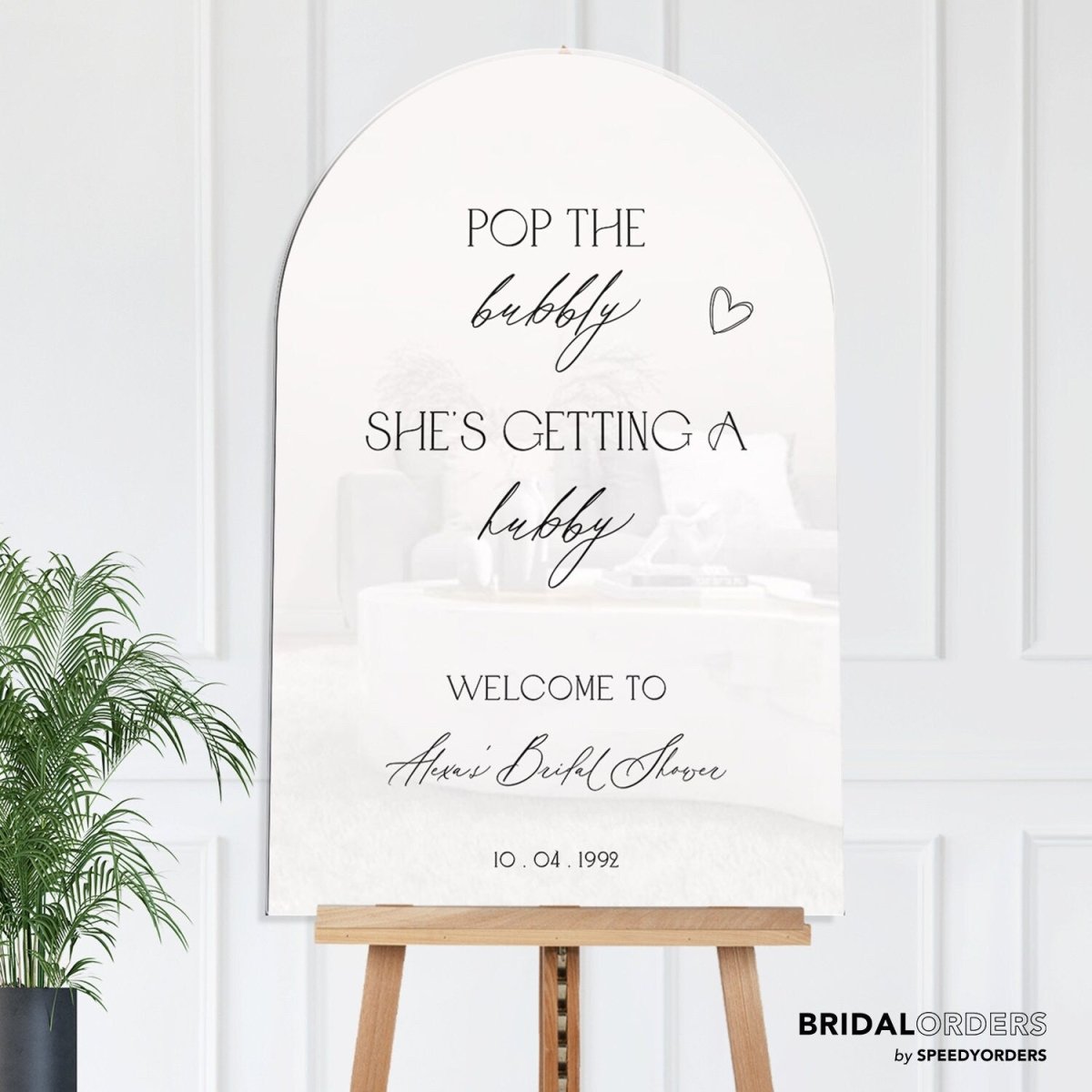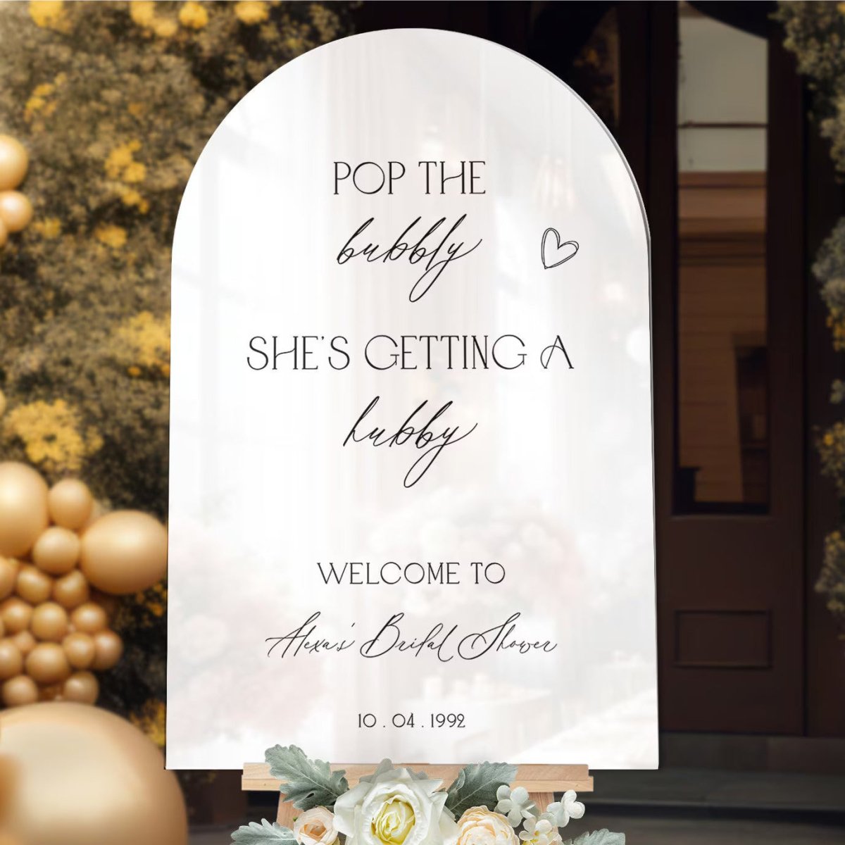 This bridal shower sign offers a unique, customized physical product made exclusively for you. It will be carefully produced and delivered right to your doorstep. The price includes the shipping fee for your convenience.