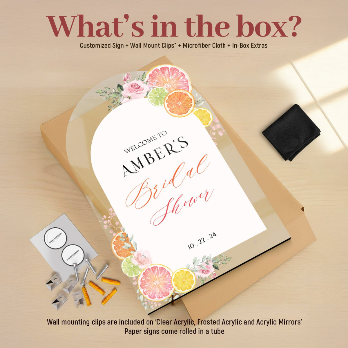 Elevate your bridal shower decor with a customizable bridal shower sign. Available in premium material options: 3/8β PVC, 1/4β clear acrylic, frosted acrylic, and acrylic mirror. Perfect for adding charm to your special day!
