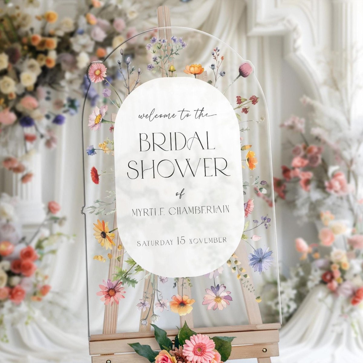 Welcome the ladies to your special pre-wedding event with this bridal shower sign. An exquisite feminine touch for the very unforgettable day that everyone will remember for a lifetime. To greet your guests, display it on an easel, in a photo frame, or on a wall.