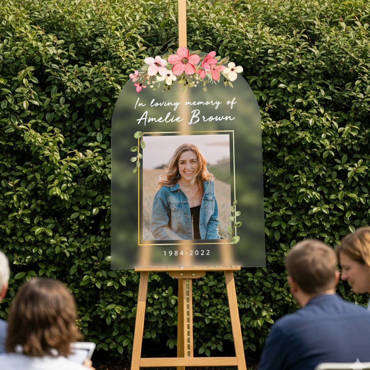 This funeral sign with photo offers a unique, customized physical product made exclusively for you. It will be carefully produced and delivered right to your doorstep. The price includes the shipping fee for your convenience.