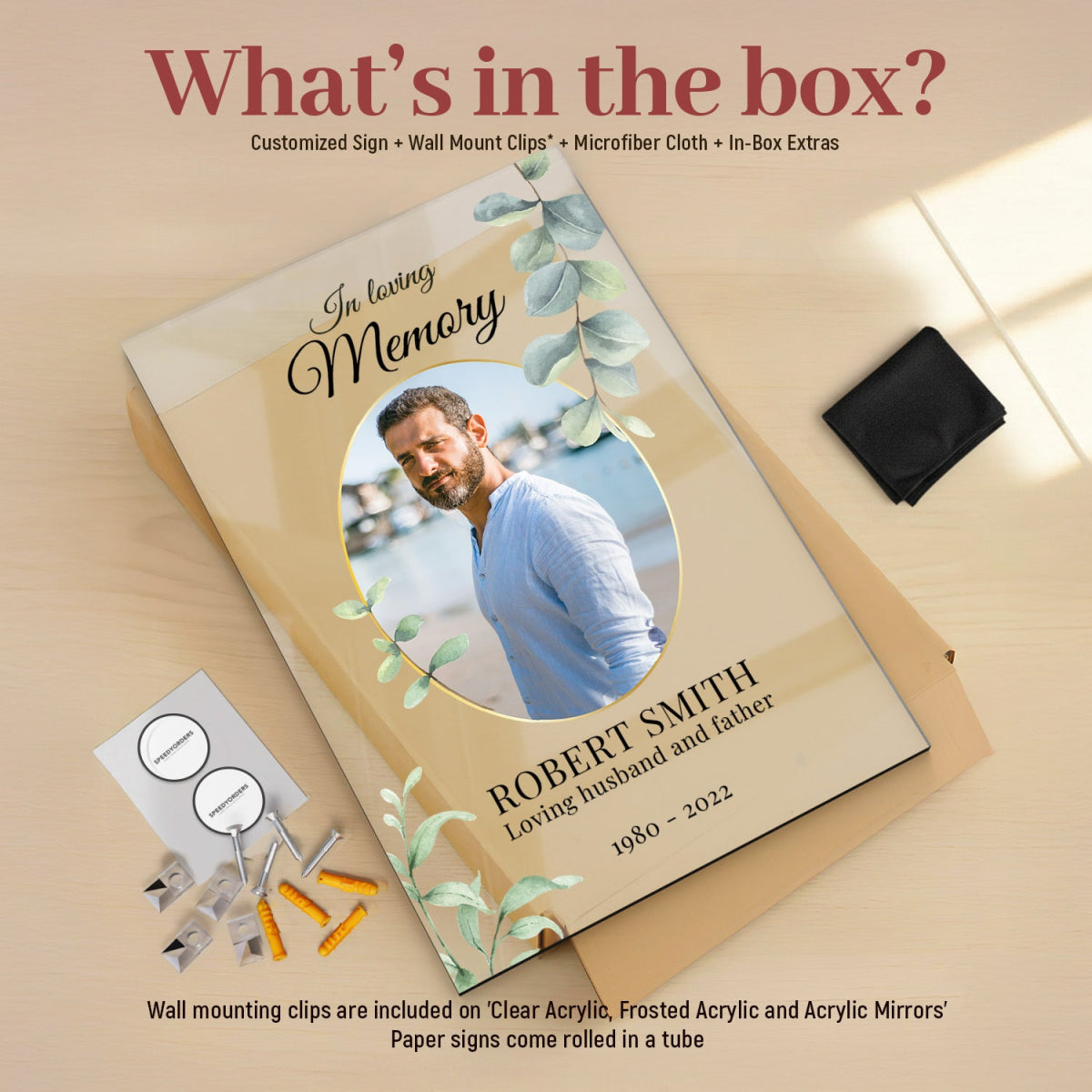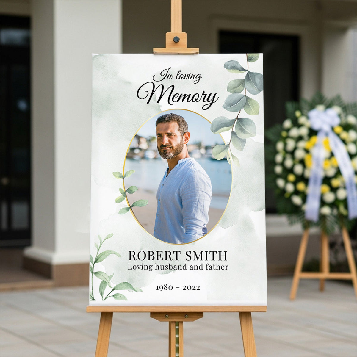 This funeral sign with photo offers a unique, customized physical product made exclusively for you. It will be carefully produced and delivered right to your doorstep. The price includes the shipping fee for your convenience.