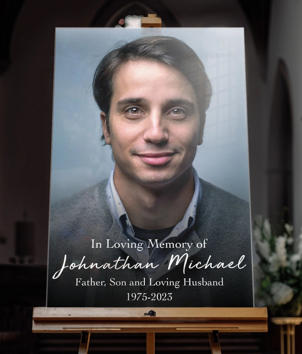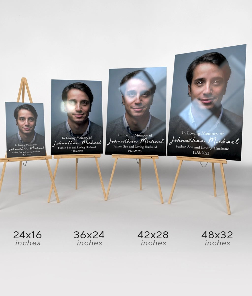 This funeral sign with photo offers a unique, customized physical product made exclusively for you. It will be carefully produced and delivered right to your doorstep. The price includes the shipping fee for your convenience.