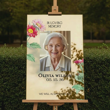 This funeral sign with photo offers a unique, customized physical product made exclusively for you. It will be carefully produced and delivered right to your doorstep. The price includes the shipping fee for your convenience.