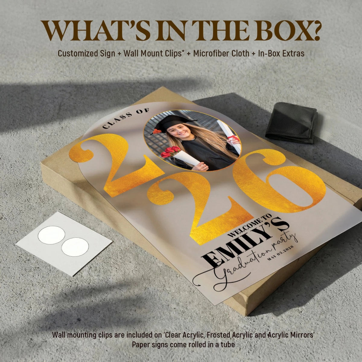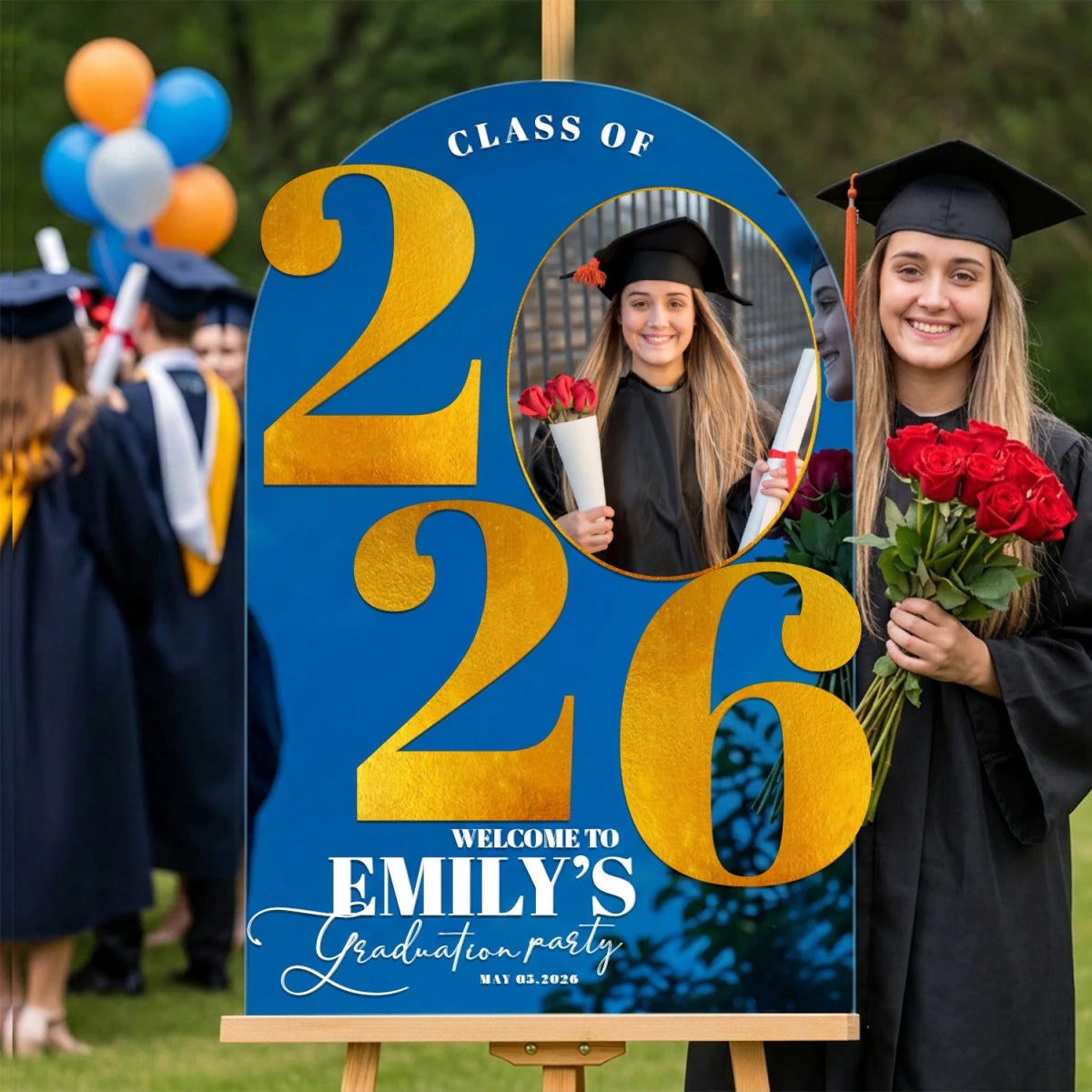 This graduation sign offers a unique, customized physical product made exclusively for you. It will be carefully produced and delivered right to your doorstep. The price includes the shipping fee for your convenience.