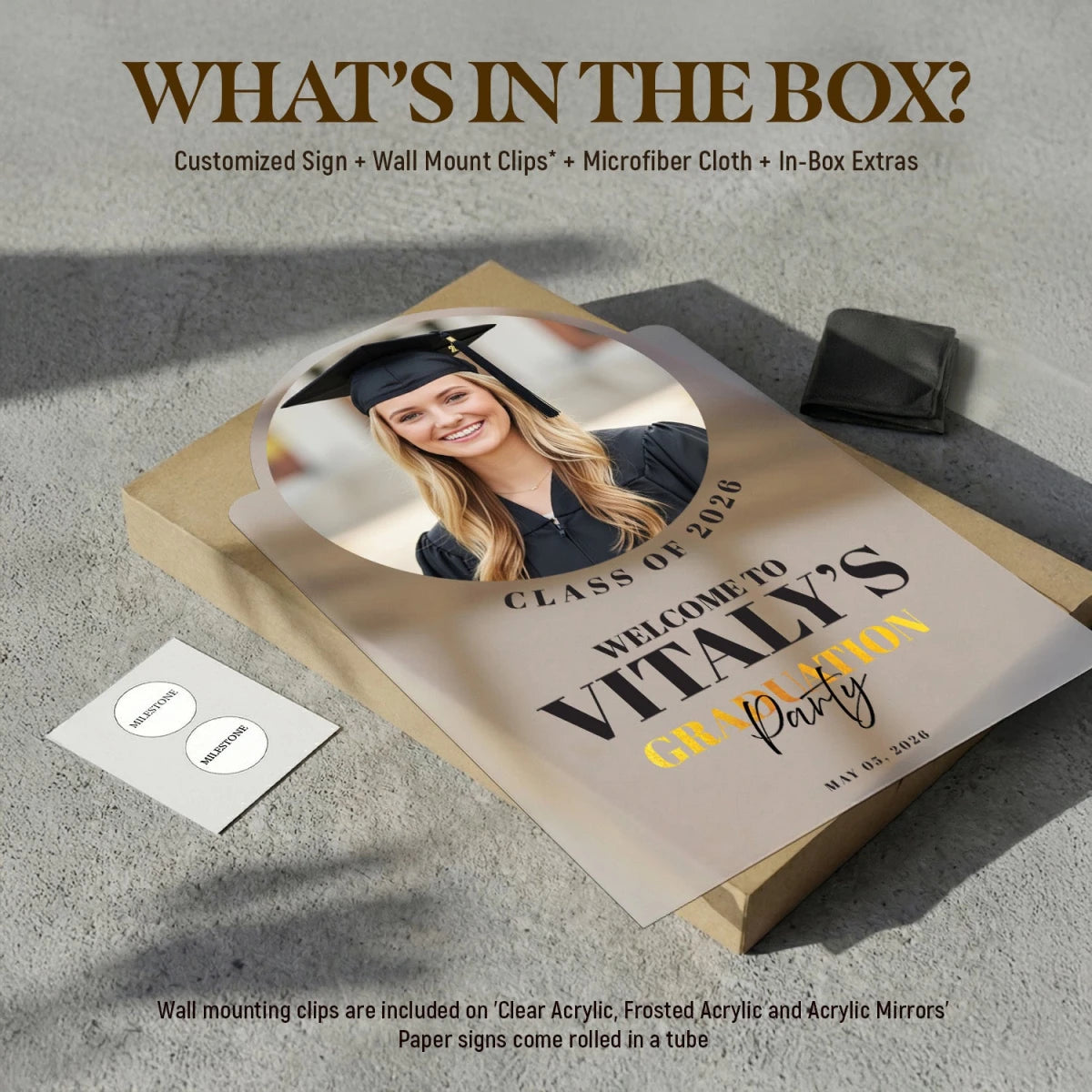 This graduation sign offers a unique, customized physical product made exclusively for you. It will be carefully produced and delivered right to your doorstep. The price includes the shipping fee for your convenience.