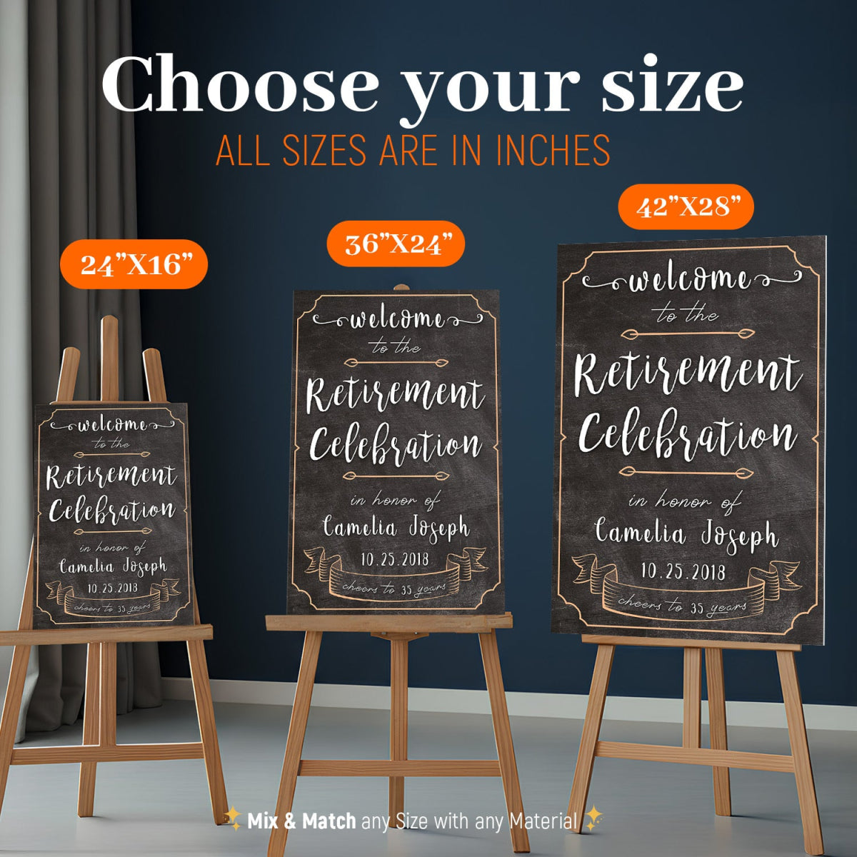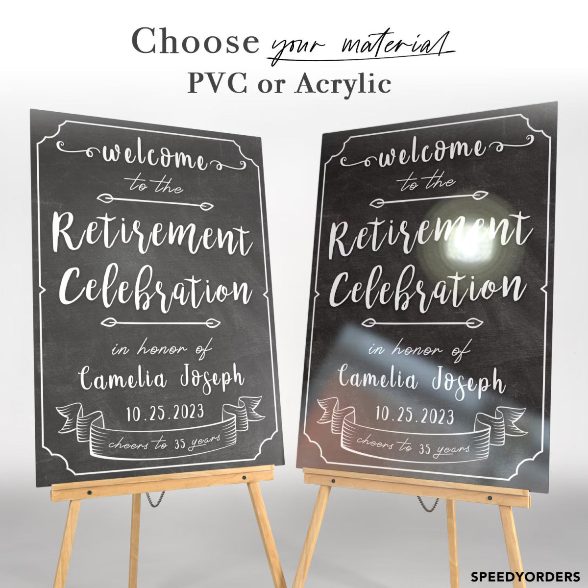 Welcome friends, and guests of honor with something that displays the interests, and personality of the retiree. Our Ever Timeless Retirement Party Welcome Sign is an excellent choice for the occasion! Just add the most noteworthy photo of the celebrant, and let our sign do its magic!
