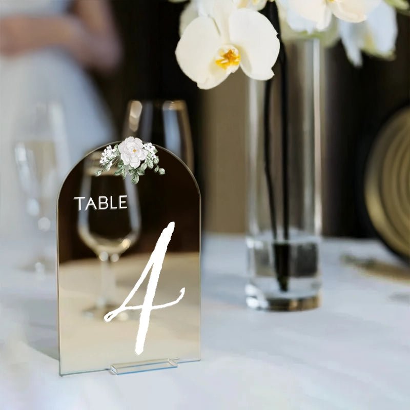 Elevate your wedding with customizable wedding table signs. Available in four premium material options: 3/8β PVC, 1/4β clear acrylic, frosted acrylic, and acrylic mirror. Perfect for adding charm to your special day!