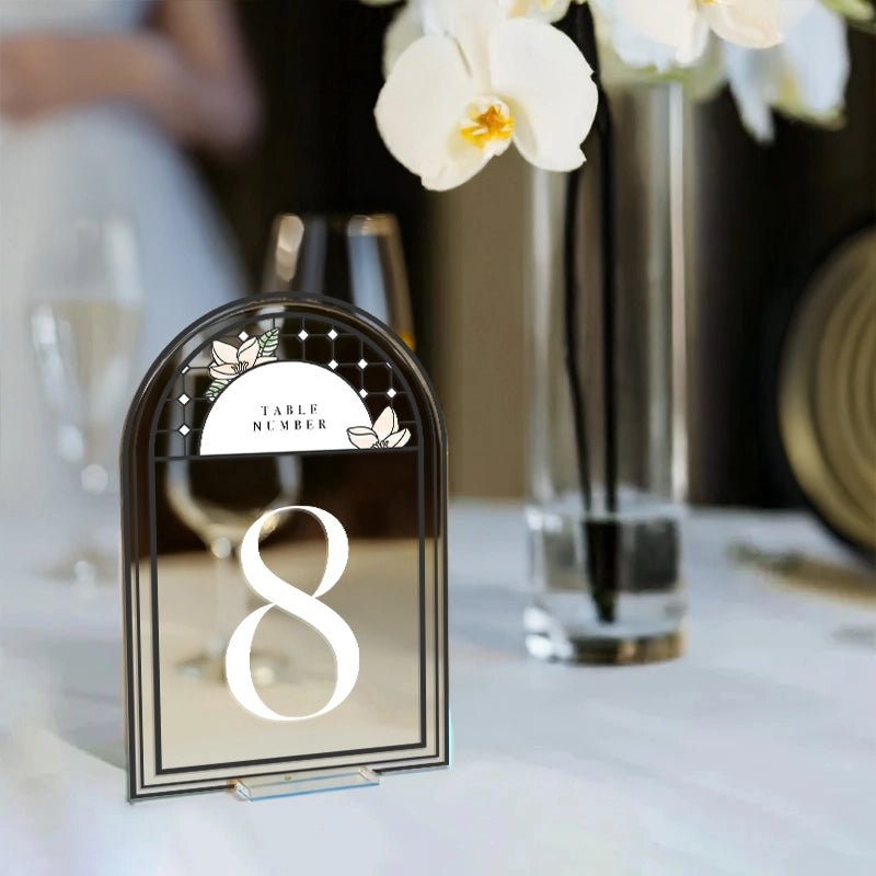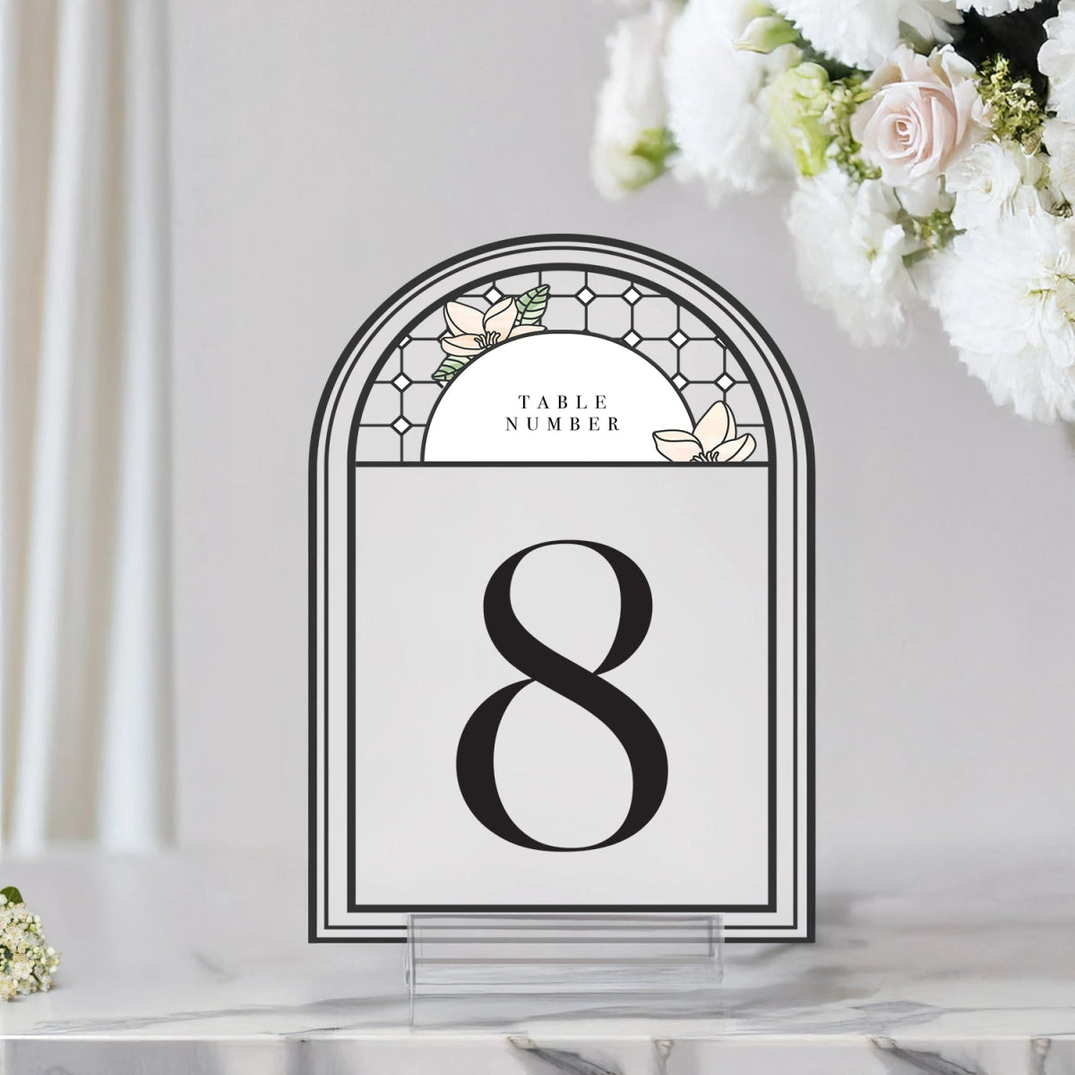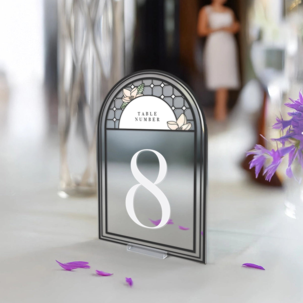 Medieval Mirror & Stained Glass Wedding Table Numbers, Acrylic Or Mirrored Table Numbers, Floral Wedding Decorations