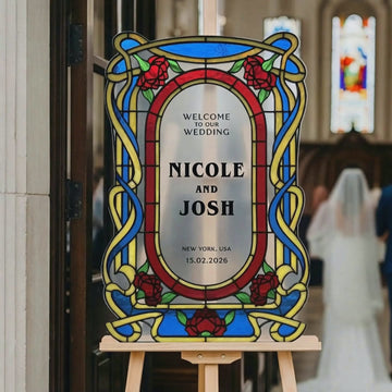 Elevate your wedding decor with a customizable stained glass wedding sign. Available in four premium material options: 3/8β PVC, 1/4β clear acrylic, frosted acrylic, and acrylic mirror. Perfect for adding charm to your special day!