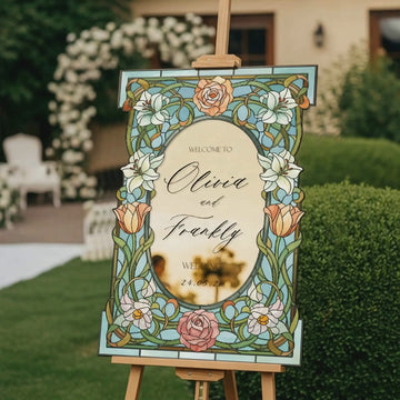 Elevate your wedding decor with a customizable stained glass wedding sign. Available in four premium material options: 3/8β PVC, 1/4β clear acrylic, frosted acrylic, and acrylic mirror. Perfect for adding charm to your special day!