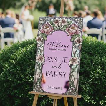 Elevate your wedding decor with a customizable stained glass wedding sign. Available in four premium material options: 3/8” PVC, 1/4” clear acrylic, frosted acrylic, and acrylic mirror. Perfect for adding charm to your special day!