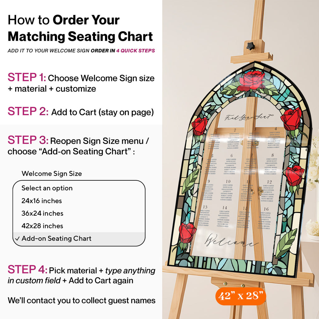 Stained Glass Wedding Sign, Custom Acrylic Red Roses Wedding Welcome Signs
