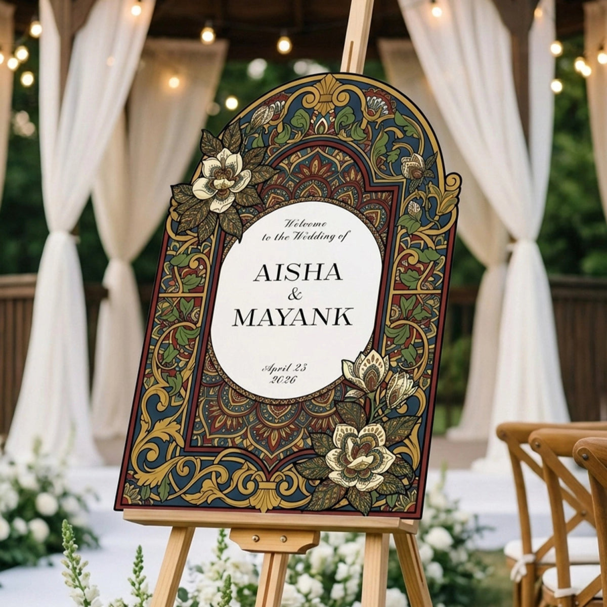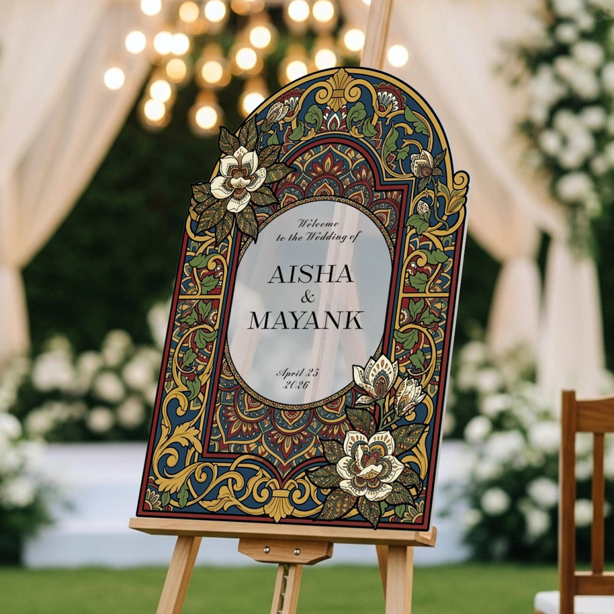 Elevate your wedding decor with a customizable stained glass wedding sign. Available in four premium material options: 3/8” PVC, 1/4” clear acrylic, frosted acrylic, and acrylic mirror. Perfect for adding charm to your special day!
