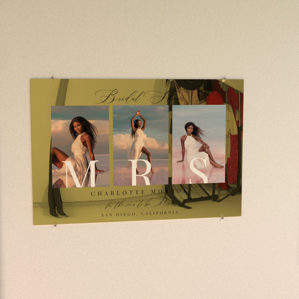 Elevate your bridal shower decor with a customizable photo bridal shower sign. Available in premium material options: 3/8” PVC, 1/4” clear acrylic, frosted acrylic, and acrylic mirror. Perfect for adding charm to your special day!