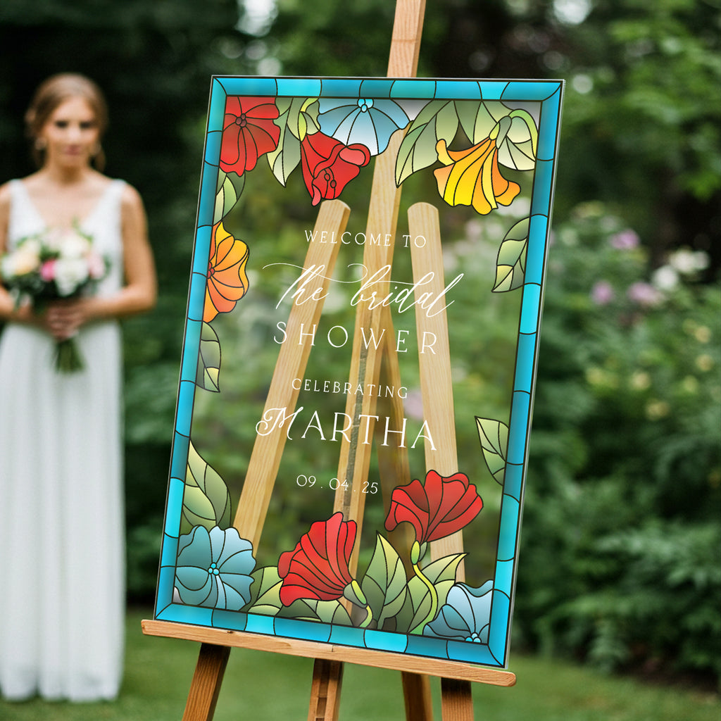 Stained Glass Bridal Shower Sign, Suncatcher Stain Glass Bridal Shower Welcome Sign