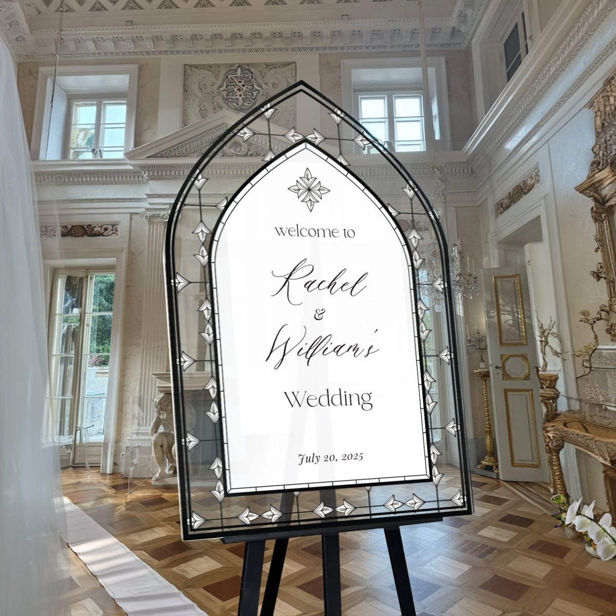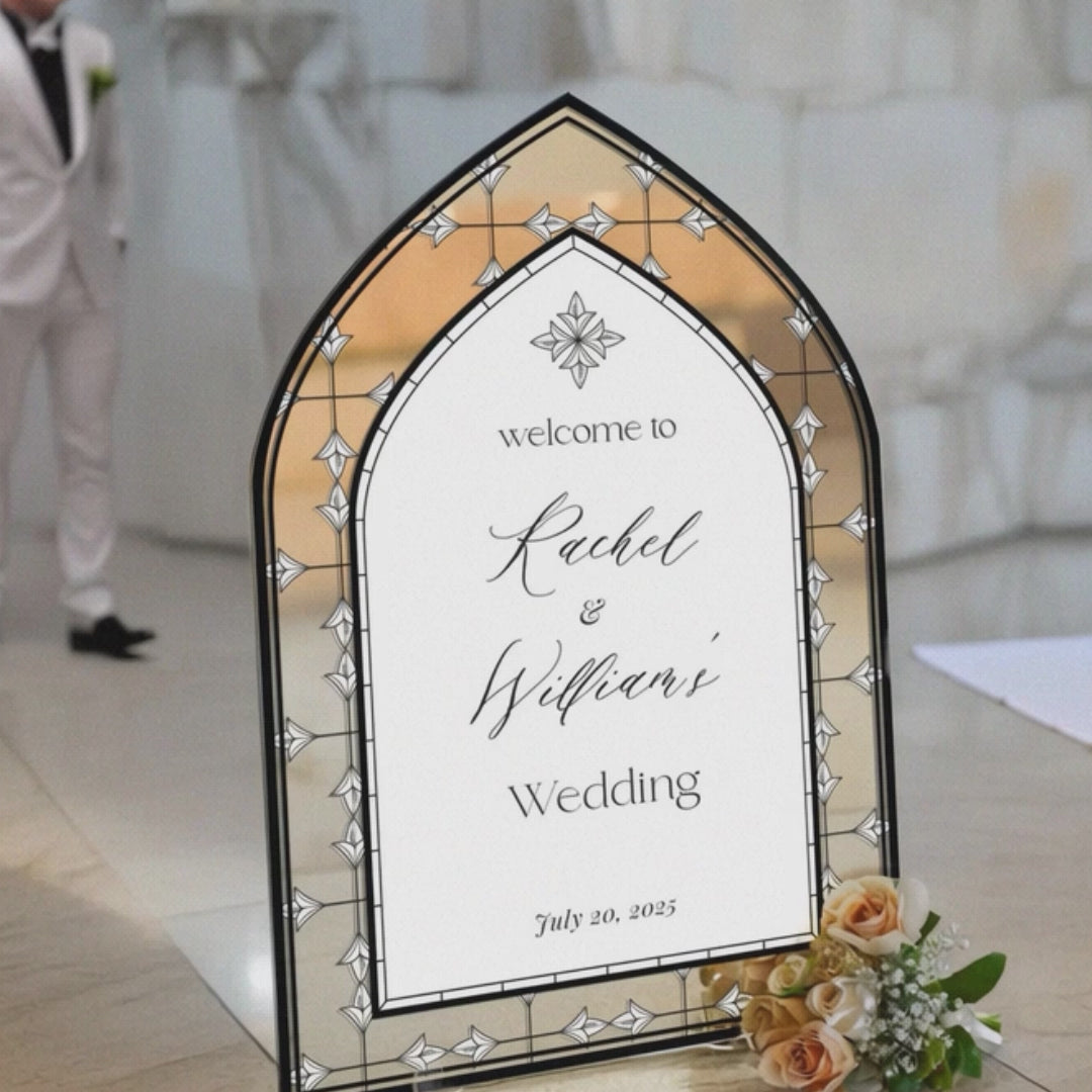 Elevate your wedding decor with a customizable stained glass wedding sign. Available in four premium material options: 3/8β PVC, 1/4β clear acrylic, frosted acrylic, and acrylic mirror. Perfect for adding charm to your special day!