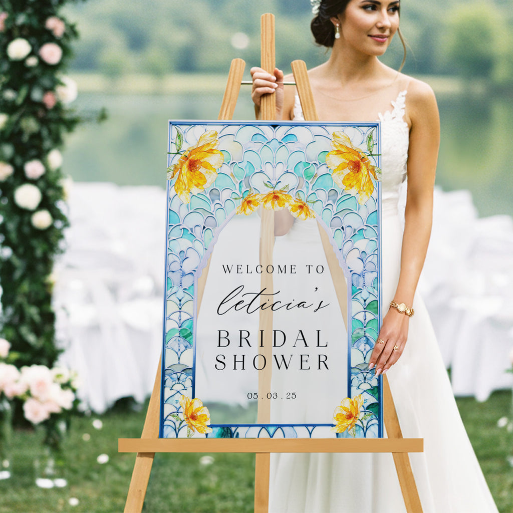 Sunflower Bridal Shower Sign, Blue Tiles Bridal Shower Welcome Sign