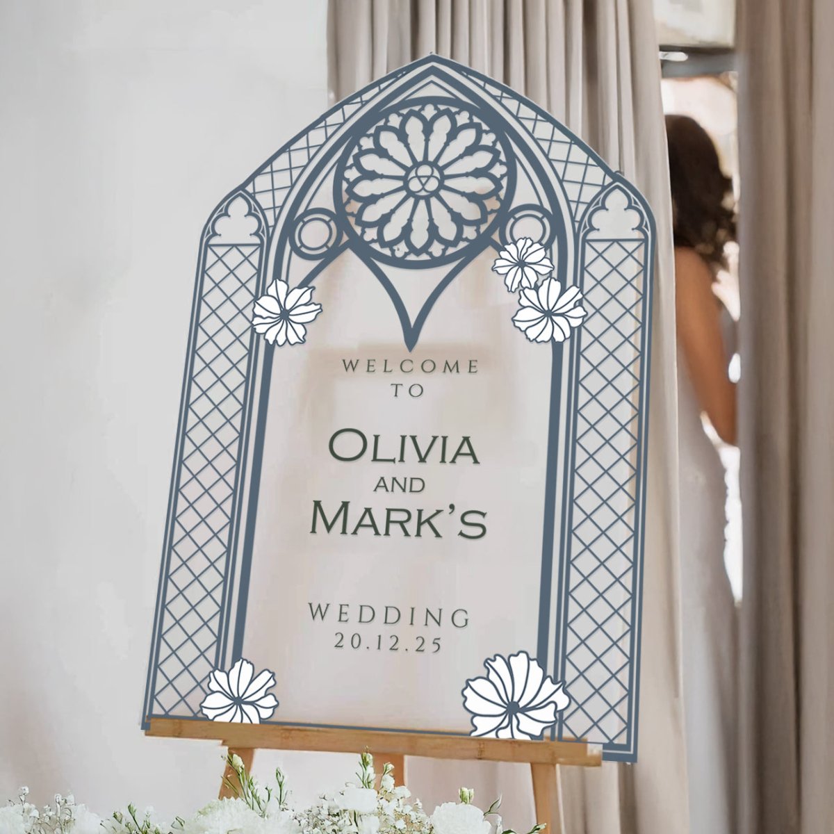 Elevate your wedding decor with a customizable stained glass wedding sign. Available in four premium material options: 3/8” PVC, 1/4” clear acrylic, frosted acrylic, and acrylic mirror. Perfect for adding charm to your special day!