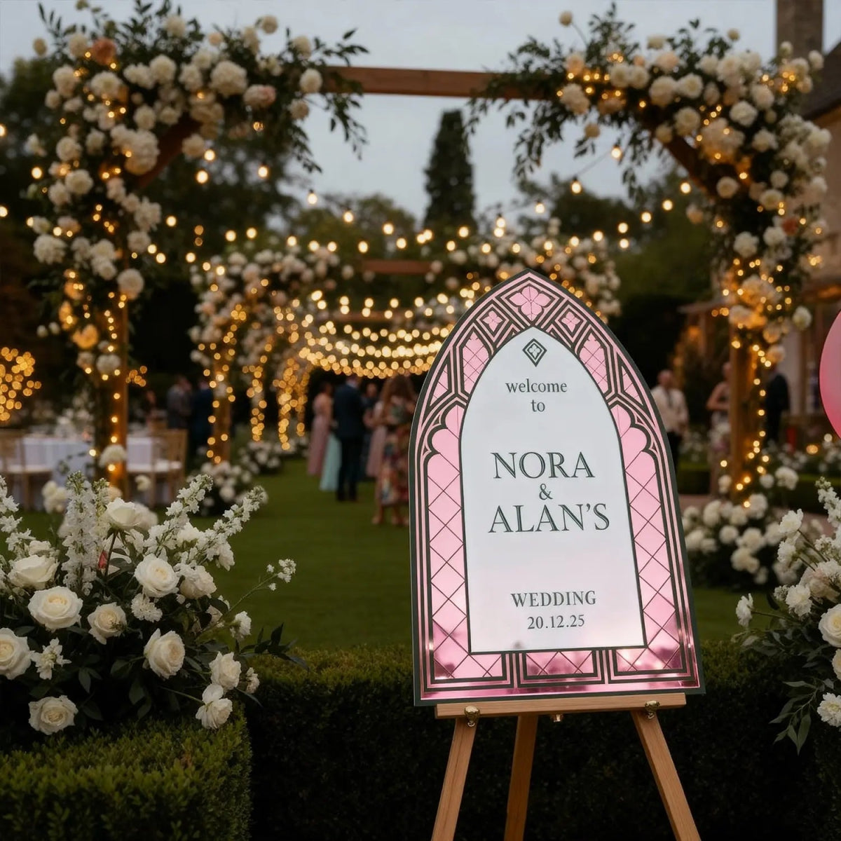 Our custom signs are available in acrylic (clear and frosted), mirrors, papers, and PVC (print board). Photobooth frames are typically made from PVC or paper.